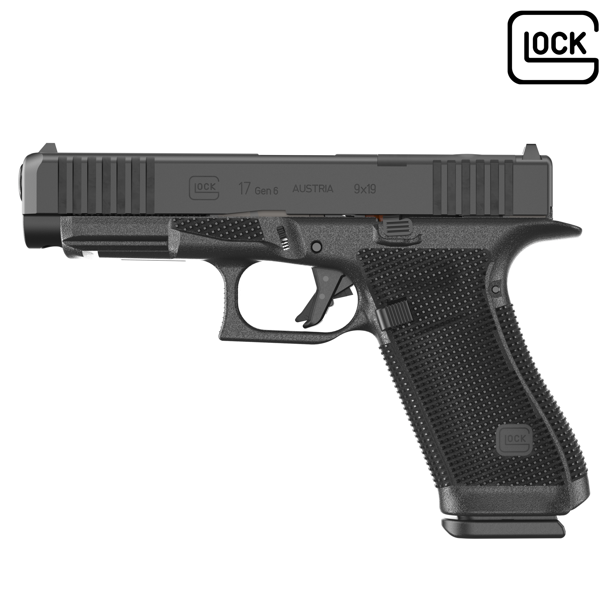 - Gen6 Ergonomie: Verfeinerte Griffstruktur ohne Fingermulden für eine universelle Passform und optimierte Rückstoßkontrolle.